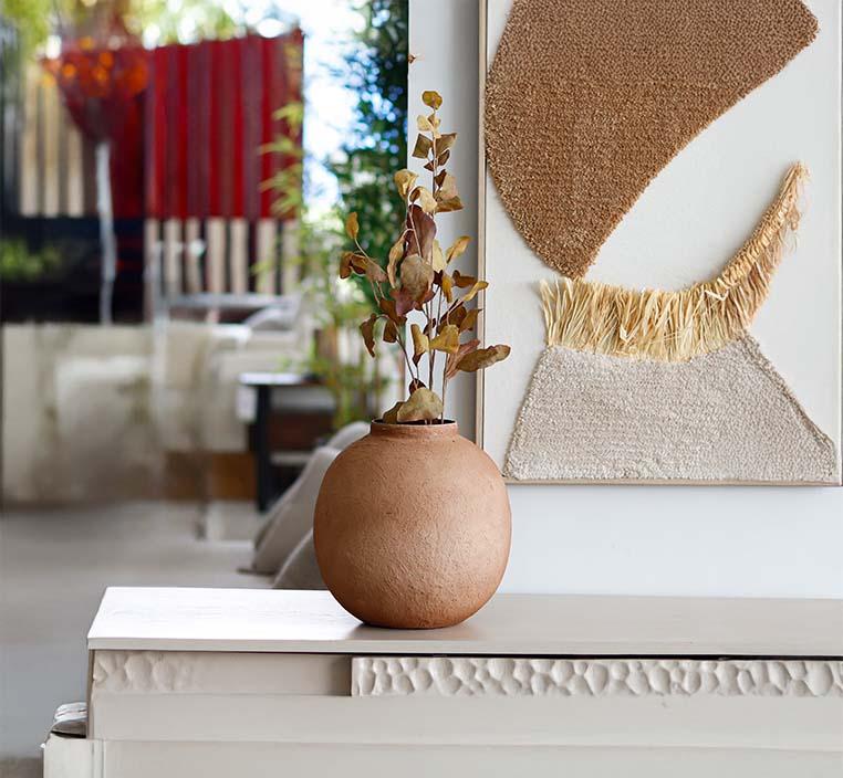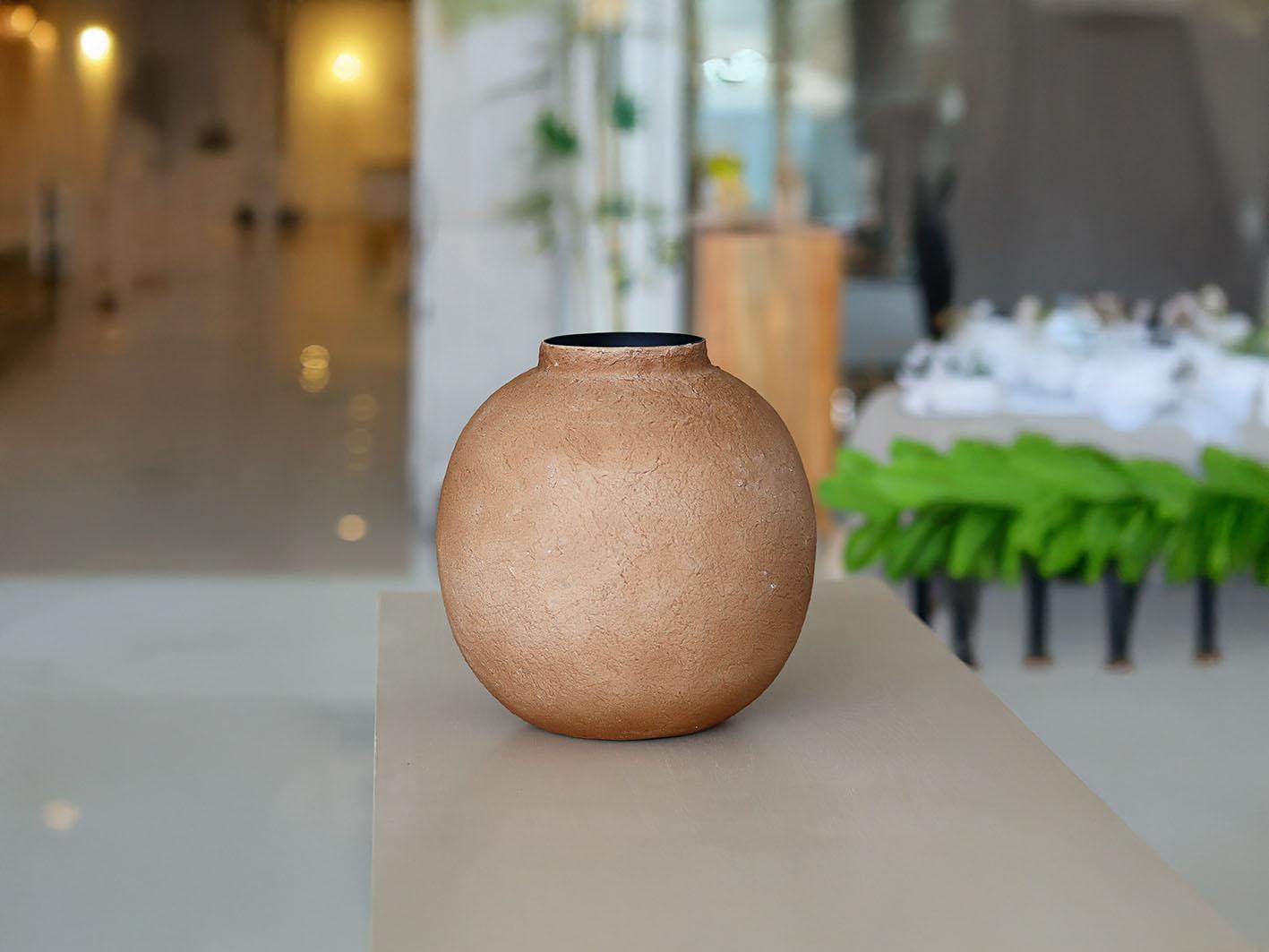 أضف لمسة من الدفء والجمال الطبيعي إلى ديكور منزلك مع الفازة الدائرية الأنيقة المصنوعة من السيراميك عالي الجودة. تصميمها الناعم ولونها البني الانيق يمنحانها طابعًا عصريًا يتناغم بسهولة مع مختلف أنماط الديكور. مصنوعة من السيراميك المتين لمظهر راقٍ يدوم طويلًا. مثالية لتنسيق الزهور الطبيعية أو الاصطناعية، كما تُستخدم كقطعة ديكور قائمة بذاتها.