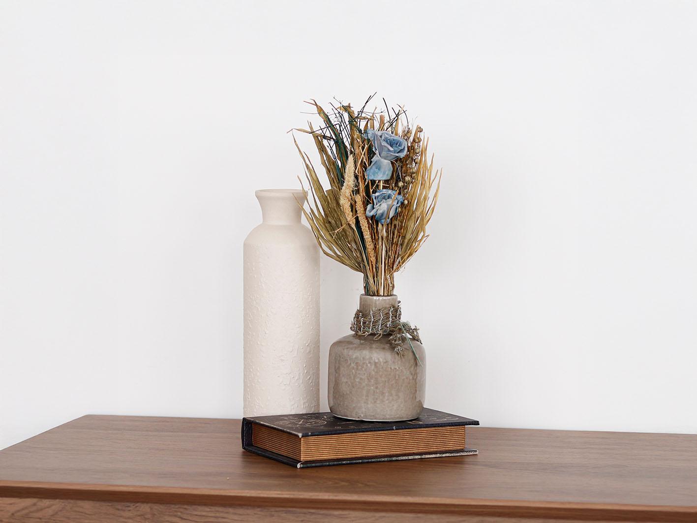 أضف لمسة فنية راقية إلى مساحتك مع هذه الفازة الصغيرة المصنوعة من السيراميك الطبيعي، والمزينة بتنسيق أنيق من الورد المجفف بألوان هادئة. تصميمها المدمج يجعلها مثالية للطاولات الجانبية، المكاتب، أو الرفوف الصغيرة. تنسجم بسهولة مع مختلف أنماط الديكور وتضفي إحساسًا بالدفء والرقي في كل زاوية. خيار مثالي لعشاق التفاصيل الناعمة والهدايا الفريدة.
