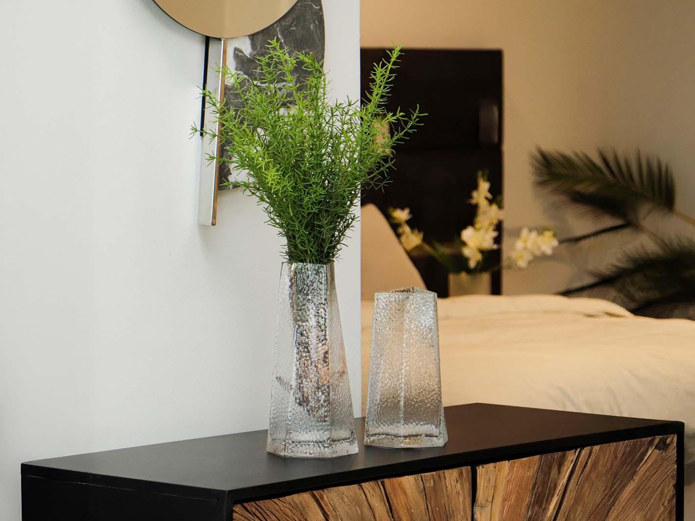 فازة زجاج بتصميم هندسي – لمسة فاخرة تُثري جمال المساحة