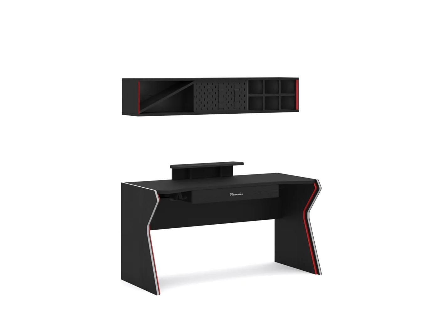 رف حائط أسود مع لمسات حمراء تضيف لمسة جمالية لمحيط اللعب الخاص بك.