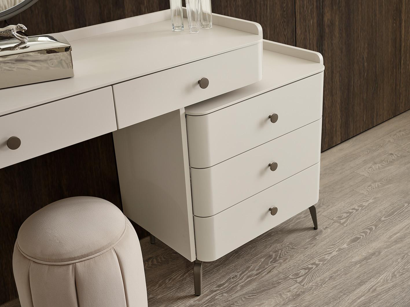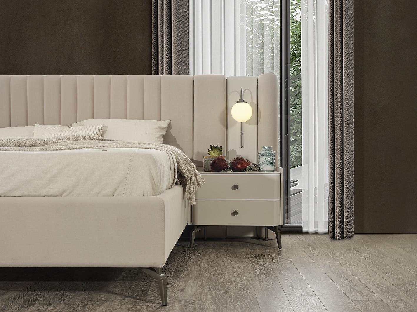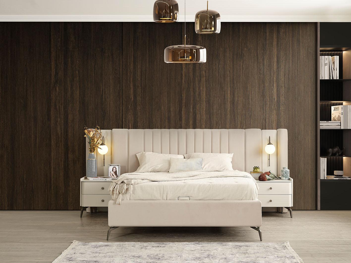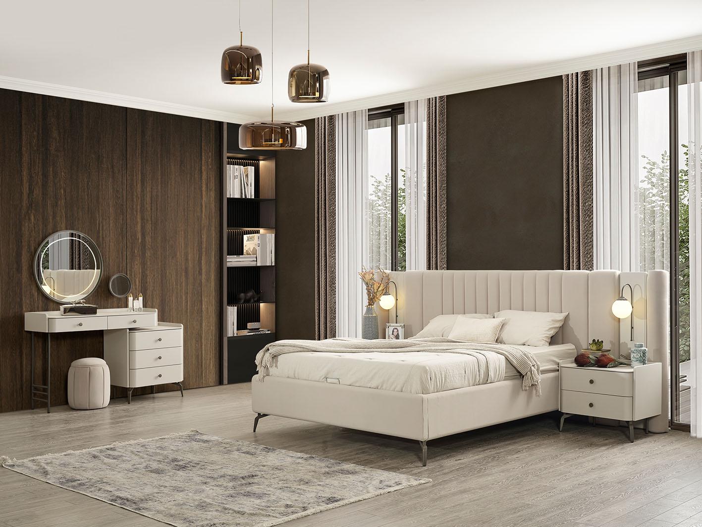 يأتي لون البيج الراقي ليضفي على الغرفة لمسة من الدفء والانسجام، مما يجعلها سهلة التنسيق مع مختلف أنماط الديكور. سواء كنت تفضل الألوان المحايدة أو الدرجات الدافئة، فإن غرفة نوم تروفا تمنحك المرونة في اختيار الإكسسوارات والمفروشات التي تعكس ذوقك الشخصي.