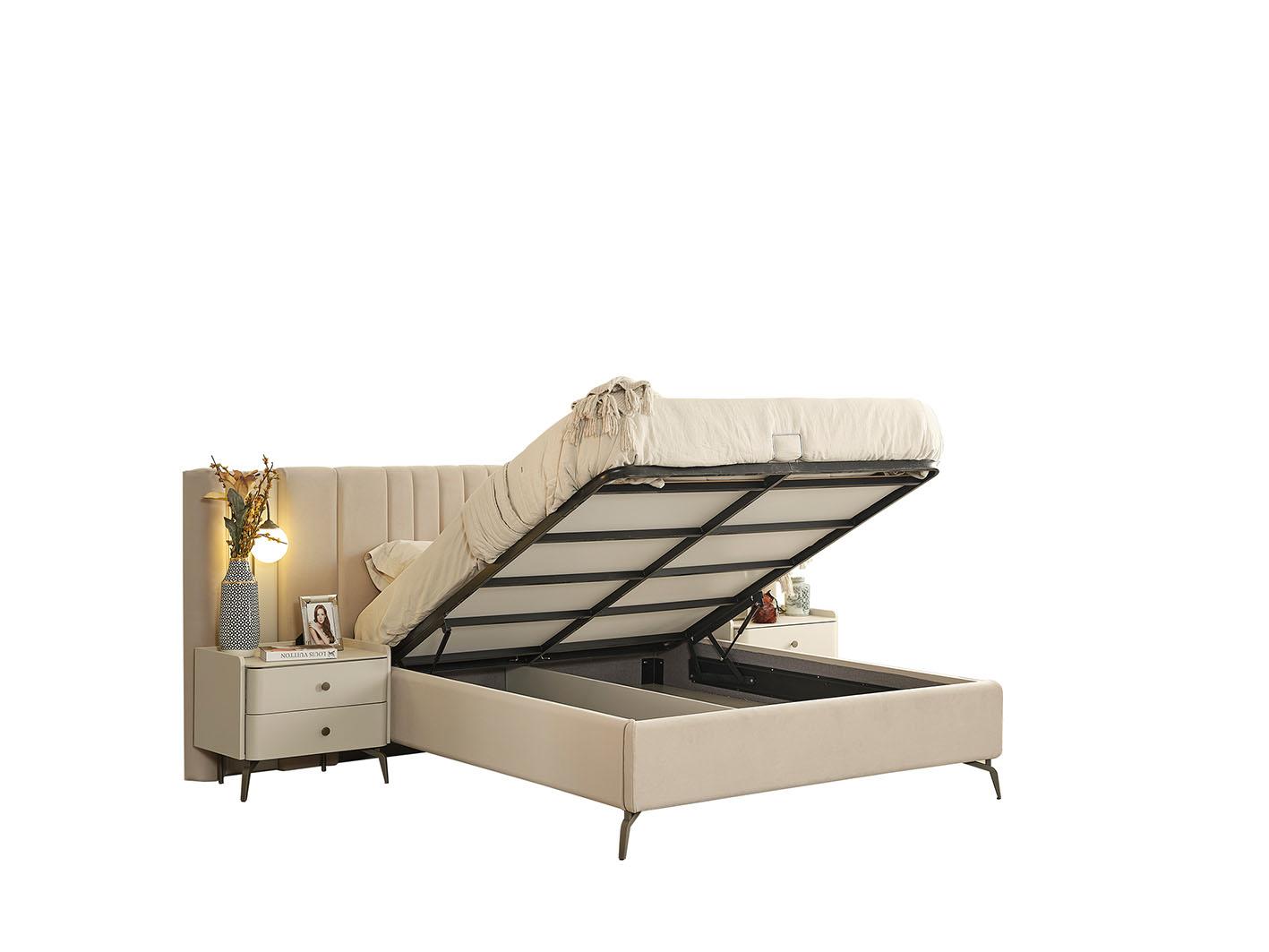 يحتوي السرير على مساحة تخزين مخفية توفر لك مكانًا عمليًا للحفاظ على أغراضك منظمة بعيدًا عن الأنظار، مما يساعد في تحقيق أقصى استفادة من المساحة. ولإضفاء أجواء مريحة ومهدئة، تم تزويد السرير بإضاءة خافتة تضفي لمسة دافئة على المكان، مما يجعله مثاليًا للأمسيات الهادئة والاسترخاء قبل النوم.