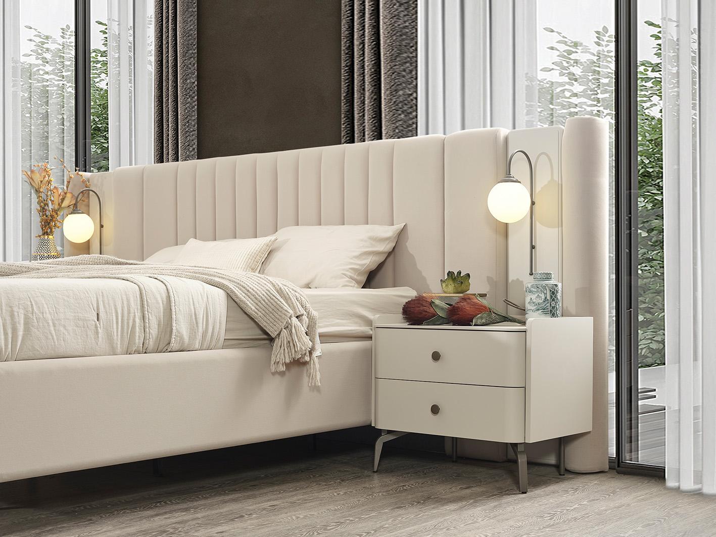 اجعل من غرفة نومك ملاذًا هادئًا يجمع بين الفخامة والعملية مع غرفة نوم تروفا المصممة بأسلوب عصري متكامل. تتميز هذه الغرفة بسرير أنيق مزود بلوّح رأسي منجد يمنحك دعمًا مريحًا أثناء النوم أو الاسترخاء، مما يضفي لمسة راقية تعزز من فخامة التصميم.