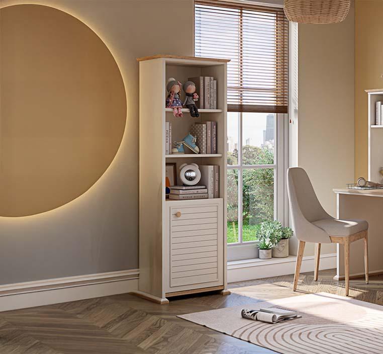 • مساحة تخزين متعددة الاستخدامات: تتميز المكتبة بأرفف مفتوحة تسمح لك بعرض كتبك المفضلة والتحف الشخصية، مما يضفي طابعًا شخصيًا وأنيقًا. بالإضافة إلى ذلك، يحتوي التصميم على درج مغلق يوفر مساحة مثالية لتخزين الأشياء الصغيرة التي تريد إخفاءها بعيدًا عن الأنظار.