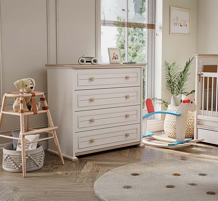 أربعة أدراج واسعة: تأتي تسريحة جولف بأربعة أدراج واسعة توفر مساحة تخزين كبيرة لترتيب أغراضك الشخصية، مثل الملابس والإكسسوارات وأدوات التجميل، لتبقى جميعها في متناول يدك بسهولة.