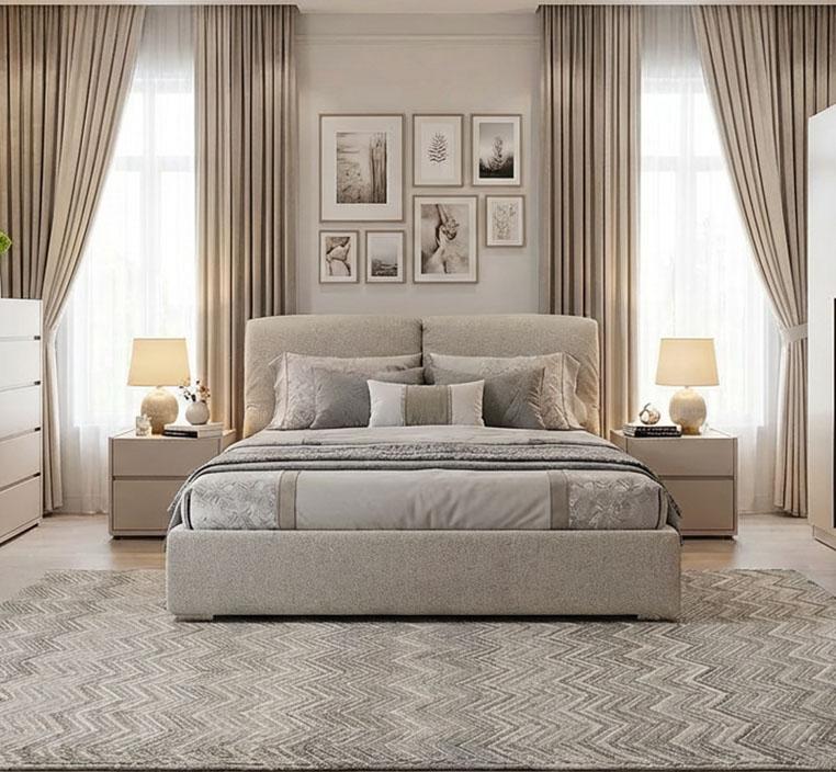 تم تصميم السرير المزدوج ليمنحك راحة استثنائية خلال النوم، حيث يأتي بمقاس مثالي 200×180 سم. السرير مصنوع من خشب MDF عالي الجودة مع تشطيب ميلامين مقاوم، مما يجعله قويًا وعمره طويل. تم تنجيده بـ قماش كتاني فاخر على السرير، ليضفي لمسة من الفخامة والراحة.