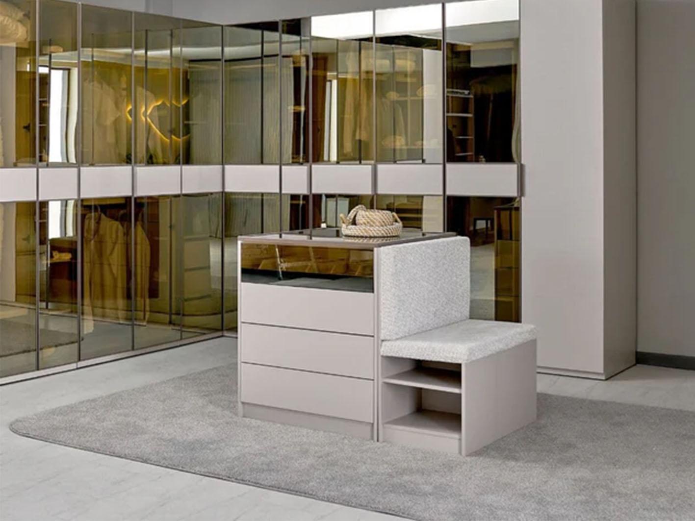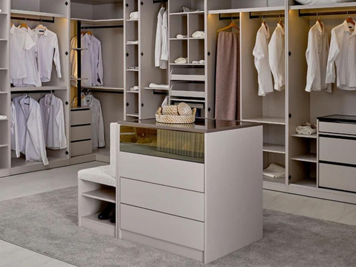 الأدراج تعمل بسلاسة والسطح الزجاجي سهل التنظيف، مما يجعل صيانة الجزيرة بسيطة ومريحة، لتبقى الغرفة دائمًا منظمة وأنيقة.