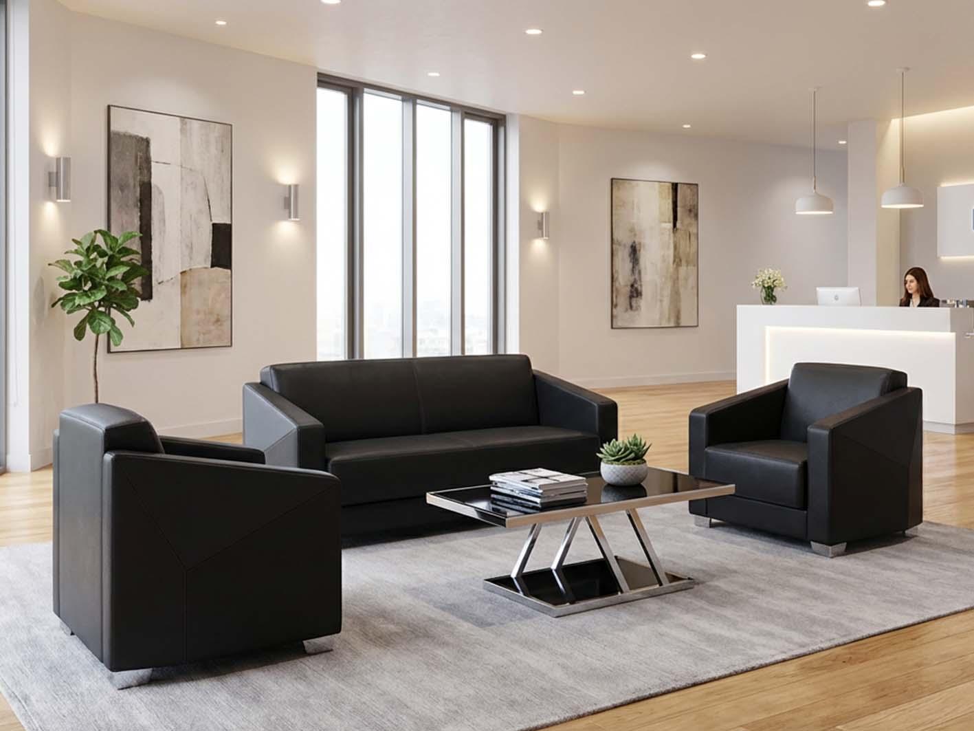 أضف لمسة من الأناقة والراحة إلى مكتبك مع الكنب المكتبي الثلاثي المميز باللون الأسود. مصنوع من خامة PU عالية الجودة، يقدم هذا الكنب تجربة جلوس مريحة مع متانة تدوم طويلاً. يضفي تصميمه العصري والبسيط طابعاً راقياً على المساحات المكتبية، سواء كانت غرف الاجتماعات أو مناطق الانتظار.