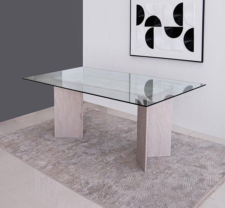 يبرز تصميم طاولة ليفربول من خلال سطحها الزجاجي الشفاف الذي يضفي إحساساً بالمساحة والاتساع في الغرفة. يمتاز الزجاج بمتانته العالية، حيث يتحمل الاستخدام اليومي بسهولة مع الحفاظ على لمعانه وجماله. القاعدة المصنوعة من الحجر الطبيعي تضيف لمسة من الفخامة العصرية، وتضمن استقرارًا ممتازًا للطاولة. هذا التصميم يجمع بين العناصر الحديثة والطبيعية، مما يجعلها قطعة فنية تكمّل أي ديكور داخلي.