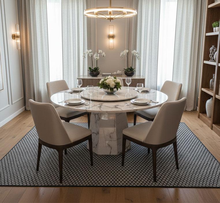 مارفيلا طاولة طعام دائرية من الرخام الصناعي – فخامة تتحدث عن نفسها