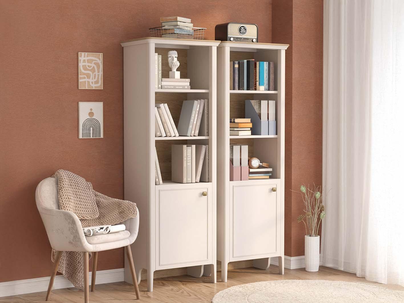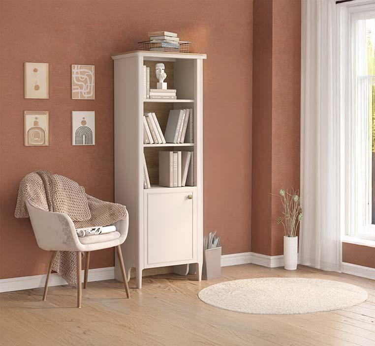 • أرفف مفتوحة للعرض: تمنحك الأرفف المفتوحة مساحة مثالية لعرض كتبك المفضلة وأغراضك الزخرفية، مما يضفي لمسة شخصية ويجعل مكتبتك محور اهتمام في الغرفة.