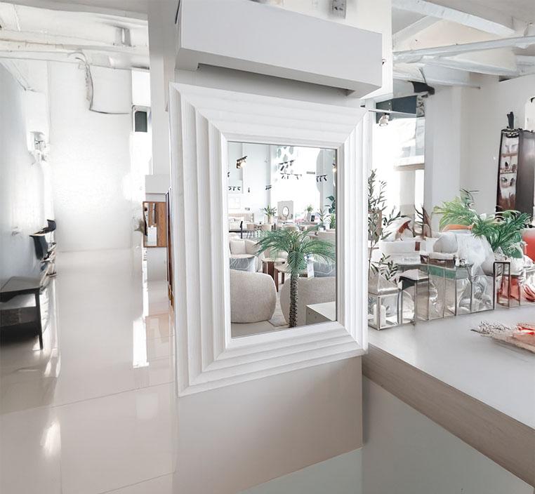 تم تصميم الإطار الخشبي بدقة ليتناغم مع جميع الأنماط الداخلية، سواء كانت كلاسيكية أو معاصرة. اللون الأبيض للإطار يمنح المرآة شكلاً متناسقاً مع معظم الأثاث، ويجعلها إضافة مثالية لغرف المعيشة، المدخل، أو حتى غرف النوم. خشب الإطار يعكس طابعاً عصريًا ونظيفًا، ويعزز من الشعور بالمساحة والضوء في أي مكان توضع فيه.