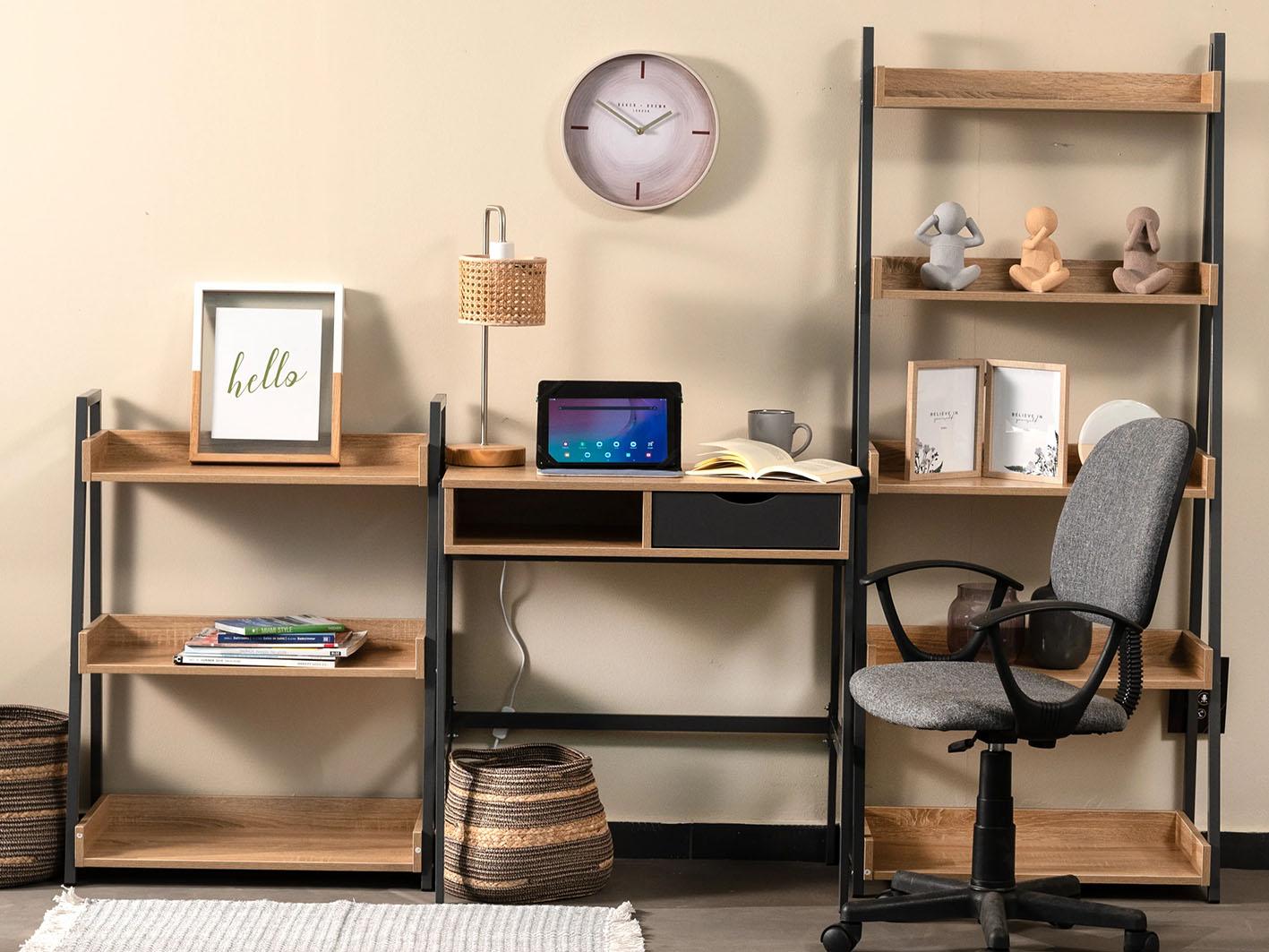 استمتع بمساحة عمل أنيقة وعملية مع مكتب "رامبل" المنزلي الصغير، المصمم خصيصًا ليوفر لك الأداء الأمثل في المساحات المحدودة. يجمع هذا المكتب بين البساطة الحديثة والمتانة العالية، ليكون الخيار المثالي للطلاب، العاملين من المنزل، أو للاستخدام اليومي الخفيف.