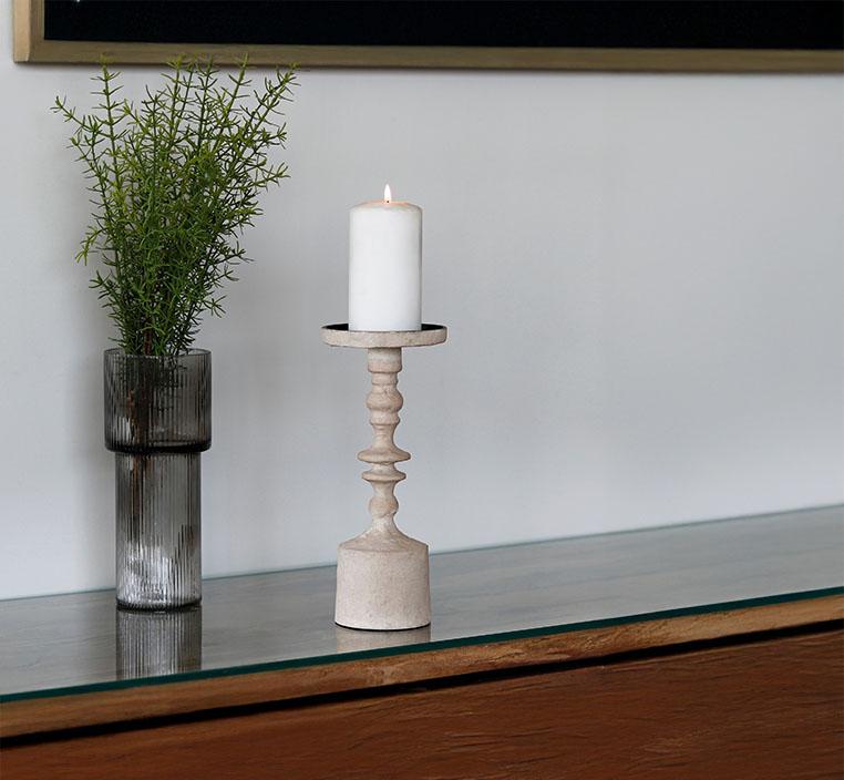 أضف لمسة فخمة ودافئة إلى ديكور منزلك مع الشمعدان البوهيمي الكبير باللون البيج، بتصميمه المميز الذي يجمع بين البساطة والرقي. يتميز بحجمه الكبير المناسب لحمل الشموع العريضة، مما يجعله قطعة مثالية للإضاءة الهادئة وإضفاء أجواء ساحرة على المساحات. تصميم بوهيمي مستوحى من الطبيعة بتفاصيل ناعمة تضيف طابعًا فنيًا راقياً. مثالي لغرف المعيشة، طاولات الاستقبال، أو كقطعة ديكور رئيسية تلفت الأنظار.