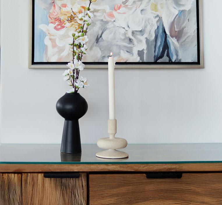أضف لمسة فنية بسيطة وأنيقة إلى ديكورك مع هذا الشمعدان البوهيمي الصغير. مثالي لتزيين الطاولات الصغيرة، أو لإضفاء جو هادئ ودافئ في المساء. تصميمه مستوحى من الأشكال العضوية المتوازنة والخامات الطبيعية التي تعزز الشعور بالسكينة. سواء استخدمته بمفرده أو مع مجموعة من الشمعدانات الأخرى، سيظل هذا الشمعدان نقطة جذب أنيقة تضيف طابعًا بوهيميًا عصريًا لأي ركن في منزلك