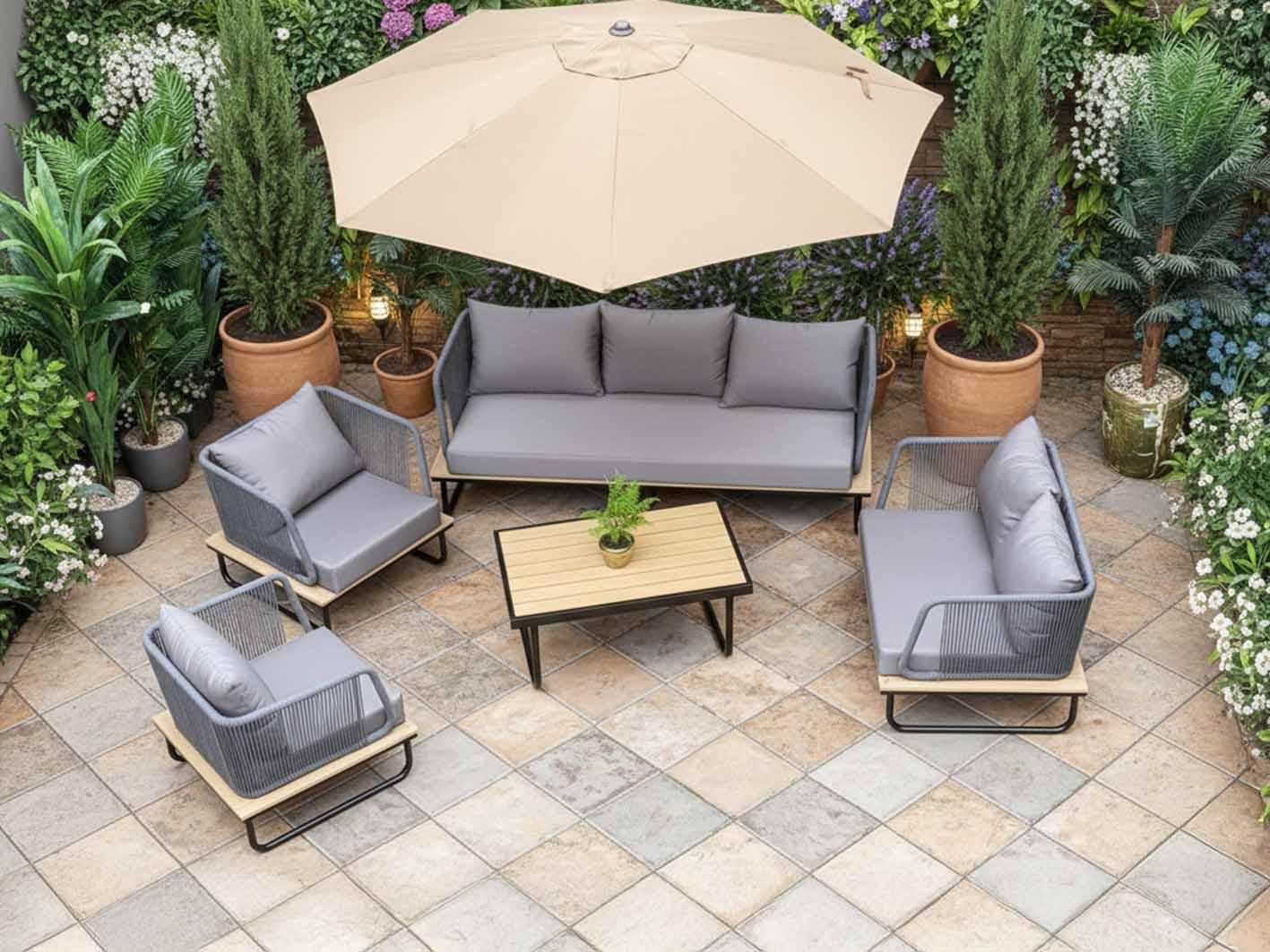 يمثل هذا الطقم مزيجًا متقنًا من الراحة والجمال والمتانة، حيث يجمع بين وسائد ناعمة، وأقمشة قابلة للتنفس، وهياكل متينة تعزز ثبات الجلسة على مختلف الأسطح الخارجية. كما يتسم التصميم المودرن بخطوط نظيفة تشكل إضافة راقية لأي مساحة، مع إدخال لمسات طبيعية تضفي إحساسًا بالدفء والانسجام.