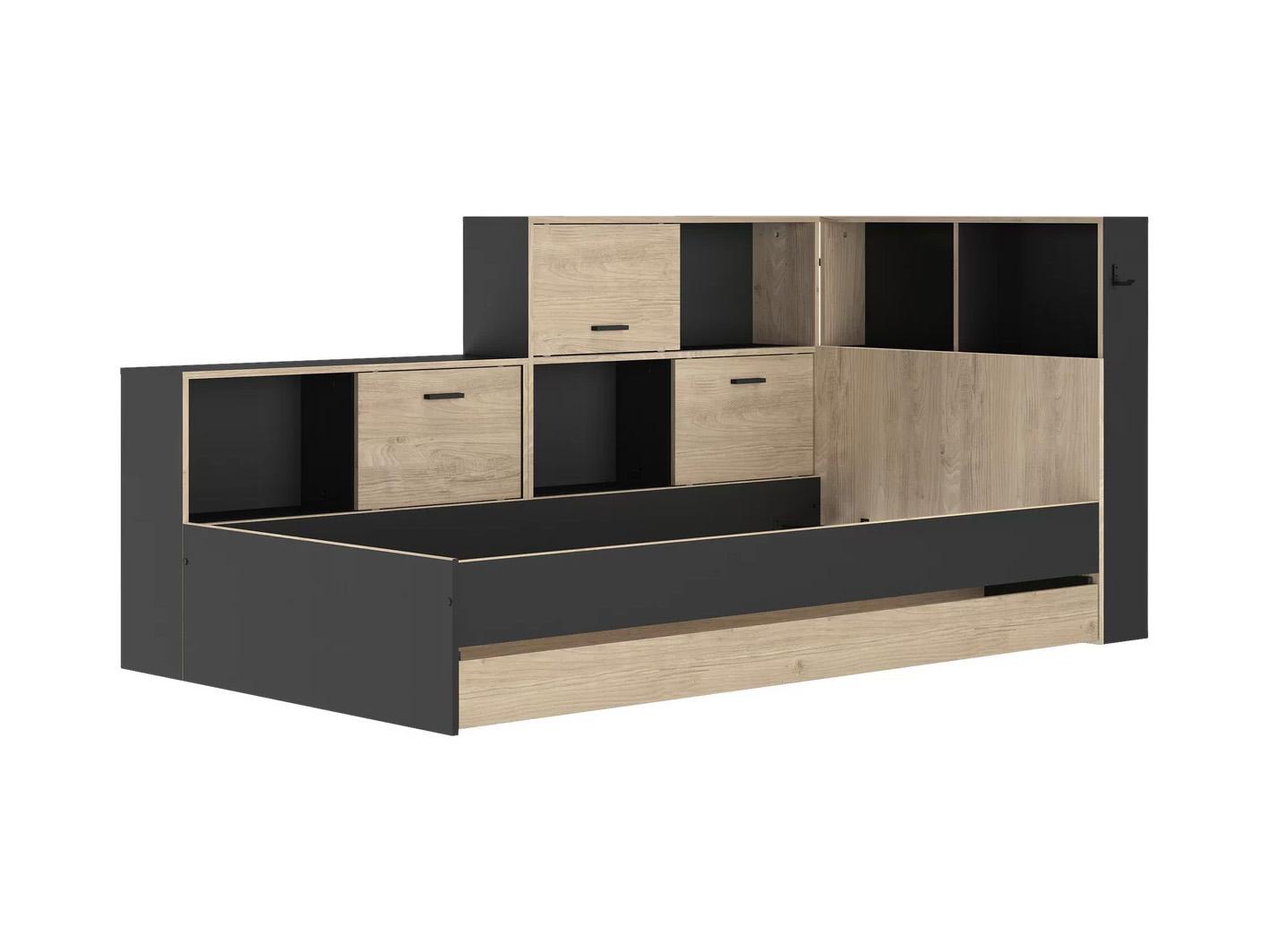 بمقاس 90*120 سم، يوفر السرير مساحة مثالية للنوم براحة تامة مع الحفاظ على حجم مناسب للغرف الصغيرة أو غرف الشباب. إنه الحل الأمثل لاستغلال المساحات دون التضحية بالراحة أو الجودة.