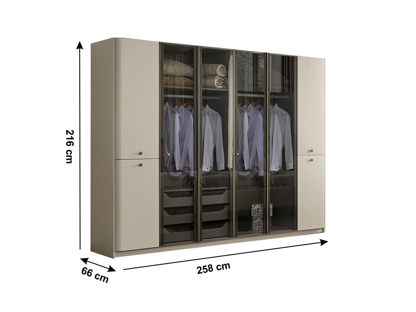 ارتقِ بتجربة تخزين ملابسك مع تروفا دولاب ملابس 6 أبواب ، المصمم بعناية ليوفر لك المساحة، الراحة، والأناقة في آنٍ واحد. ، وتلبي كل احتياجاتك التنظيمية بأعلى مستويات الجودة. يأتي تروفا بتقسيمات مدروسة بعناية لتناسب مختلف أنواع الملابس والمقتنيات. يحتوي على مساحة واسعة لتعليق الملابس الطويلة والقصيرة، بالإضافة إلى عدد من الأرفف التي تتيح لك ترتيب الحقائب، الأحذية، أو حتى المفروشات بكل سهولة. كما تم تزويده بأدراج داخلية عميقة وعملية، لتخزين القطع الصغيرة والإكسسوارات بطريقة منظمة وأنيقة.واحدة من المزايا البارزة في دولاب تروفا هي الإضاءة التلقائية التي تعمل بمجرد فتح الأبواب، مما يمنحك رؤية واضحة للمحتويات مهما كانت الإضاءة في الغرفة. وللحرص على نظافة محتوياتك، تم تزويد تروفا بشعيرات رقيقة على حواف الأبواب تعمل كحاجز يمنع دخول الغبار، لتحافظ على ملابسك بحالة مثالية في كل الأوقات.أما نظام الإغلاق، فهو يجمع بين الهدوء والأمان. بفضل آلية الإغلاق السلس، تُغلق أبواب تروفا بلطف دون أي ضوضاء، لتضفي أجواء هادئة ومريحة في غرفة نومك.صُنع تروفا من خامات عالية الجودة تضمن المتانة والثبات على المدى الطويل، حيث تم اختيار المواد بعناية لتقاوم الاستخدام اليومي وتبقى بأفضل حالاتها لسنوات.