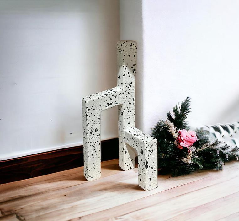 تعتبر هذه التحفة مثالية لعشاق الفن الحديث والباحثين عن قطع فنية فريدة ليضيفوها إلى مجموعتهم الخاصة. يمكن استخدام هذه التحفة كعنصر عرض مذهل على الرفوف أو الطاولات أو حتى كجزء من تجميعة فنية أخرى. ستضفي الكتل البيضاء النقية والنقاط السوداء الجريئة لمسة من الجمال والأصالة على أي مساحة يتم عرضها فيها.